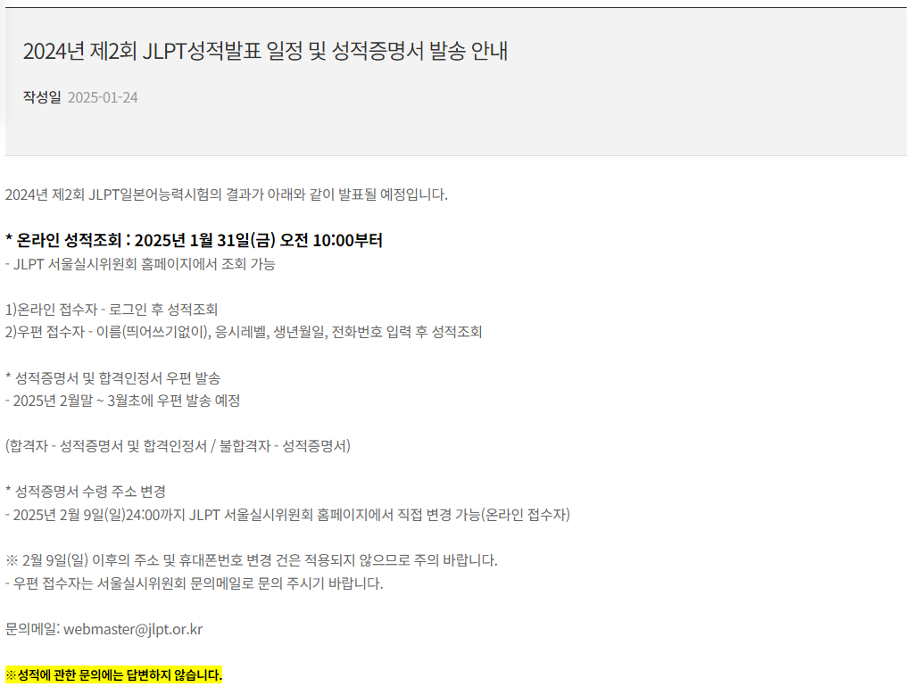 제2회 JLPT 결과발표는 담주가 구정이니까 2월 초로 연기되지 않을까 싶다...