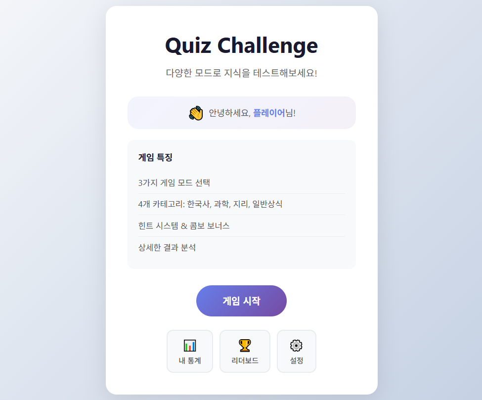 이 페이지는 React와 Vite를 사용해 제작한 퀴즈 웹앱입니다.별도의 설치 없이 브라우저에서 바로 실행할 수 있으며,간단한 문제 풀이를 통해 결과를 확인할 수 있도록 구성했습니다.개인 프로젝